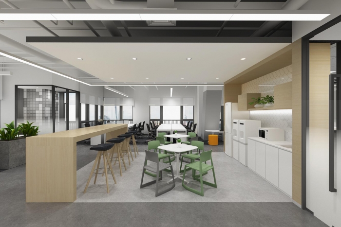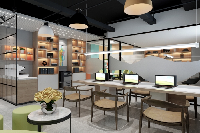 科技型企业。设计团队以现代简约风格为核心,旨在打造一个既高效又舒适的办公环境。 现代简约风格强调空间的合理利用和功能性布局。通过去除多余的装饰和元素,使空间显得更加宽敞、明亮,同时满足员工日常工作的需求。