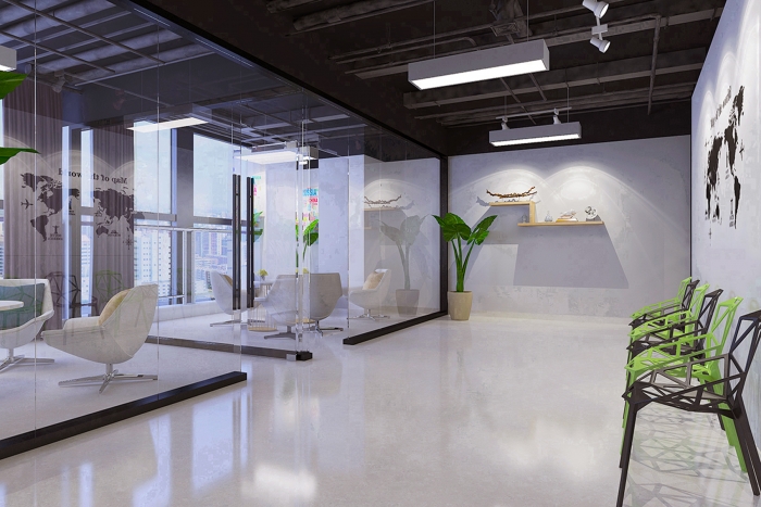 设计师在接到中控办公室装修项目后,首先对觅拓公司的企业文化、业务特点和员工需求进行了深入了解。结合中控室的特殊功能,提出以下设计思路: 中控室作为公司的“大脑”,其设计既要体现出科技感,又要确保日常操作的便捷性