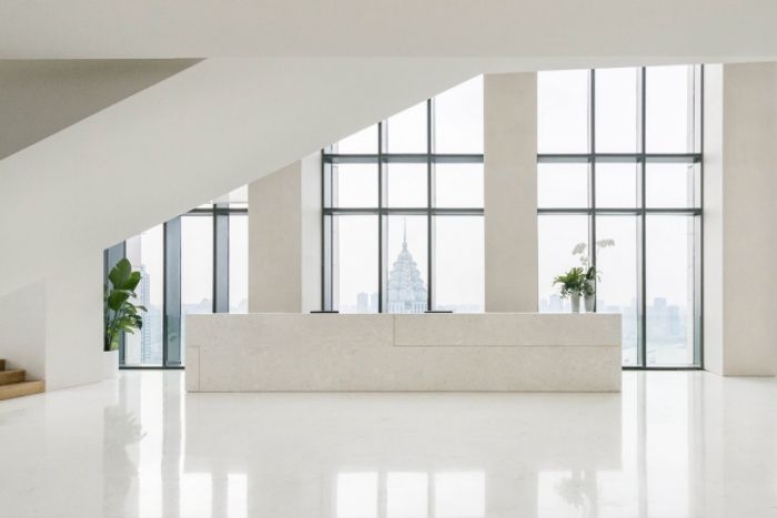 整个办公空间的设计以舒适为目的,让员工在这里办公的同时不会感到压抑,从而提高工作效率,此外,设计师还配以雅士白大理石铺贴,营造时尚、活跃的整体氛围以增强空间的视觉美感。为了进一步提高空间的品质,也为了提供给员工及客户一个舒适的环境,设计师打造了半开放式洽谈区,在此处洽谈沟通不失为一种享受