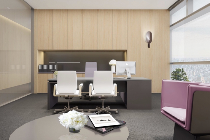 本办公室装修设计项目,位于安徽合肥,采用轻奢风格,本风格强调设计感和品质感,通过简约而不失精致的设计手法,营造出既高雅又舒适的办公氛围。它注重空间的层次感和立体感,通过巧妙的设计来提升空间的美感和实用性