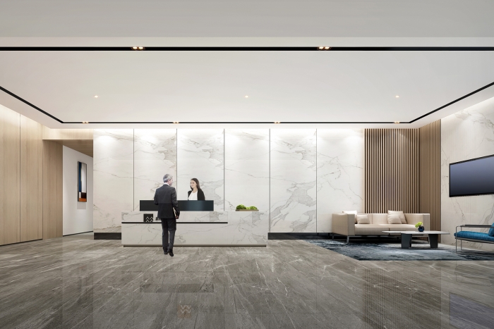 该办公室装修设计案例位于芜湖市,采用现代简约风格装修设计,设计理念为“简单、实用、自然、舒适”。强调功能性和实用性,避免过度华丽的装饰和过多的陈设。现代简约风格的设计不仅仅是减少装饰元素,而是追求更高层次的设计境界,通过简洁的线条和形状,以及合理的色彩和布局,创造出既舒适又具有现代感的空间。