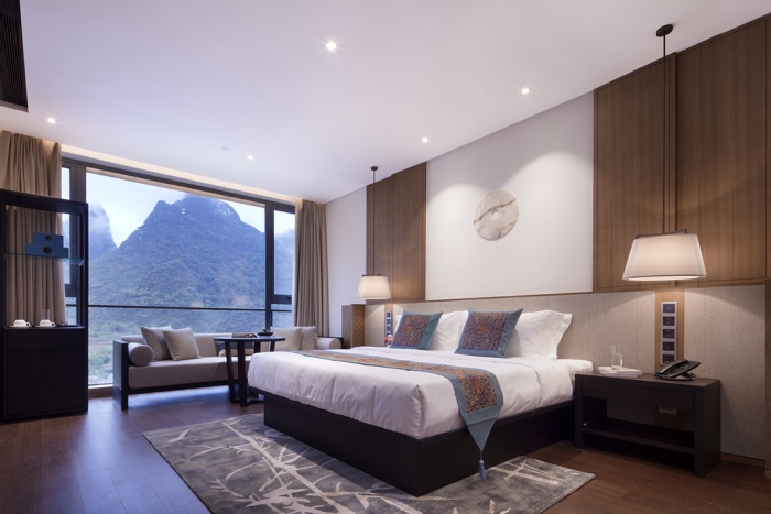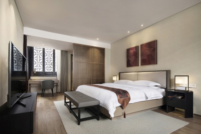 本案的采用新中式风格,整体设计结合了历史与文化元素,寄情于景,返璞归真。 本民宿案例内部共有二十六间客房,根据不同的朝向景观和面积进行合理的划分。设计师提取出具有代表性的地域色彩应用在客房区域,创造不同的情境体验,使空间更具自然的灵动与生机。大面积的落地窗将自然景观引入室内,临窗而立,将景致尽收眼底。客房沿用简...