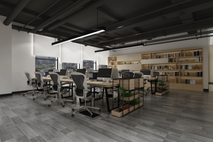 该厂房翻新改造工程位于合肥蜀山区国科军通协同创新产业园内,主要对厂房顶面进行翻新改造。顶面四边石膏板吊顶走边,中间安装铝方通吊顶,铝方通以其轻便易安装、美观大方、性能优越、经济实用以及广泛的应用领域等优势,成为了建筑装饰领域的佼佼者。