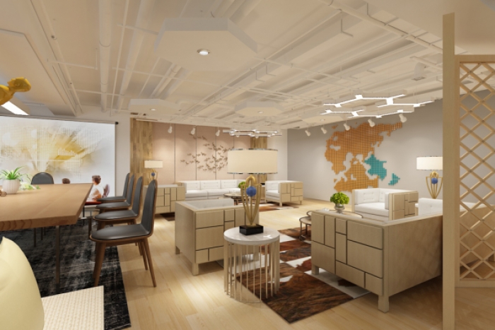 项目性质:办公室空间项目面积:600㎡硬装造价:1100元/平方设计时间:2019年9月完成时间:待完工主要材料:硬包、柚木色木饰面、大理石、不锈钢压条、米色条纹地砖、石膏板造型天花吊顶、铝格栅、墙布、软包、石膏板集成吊顶、实木地板、木饰面、地毯等设