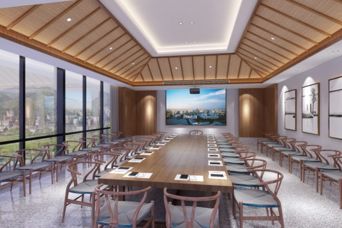 在空间规划与使用功能上,设计坚持“以人为本”希望表现出沉稳,内敛的气质,同时又具生命力。 此项目是一个合肥伊利的一期和二期会议室、接待室等办公室翻新改造工程,中间还包含了生产车间门头装修及车间厂房翻新。厂房办公空间使用最为频繁的就是会议室和接待室。因此在设计上要求做到既简单又要显示企业的高档。
